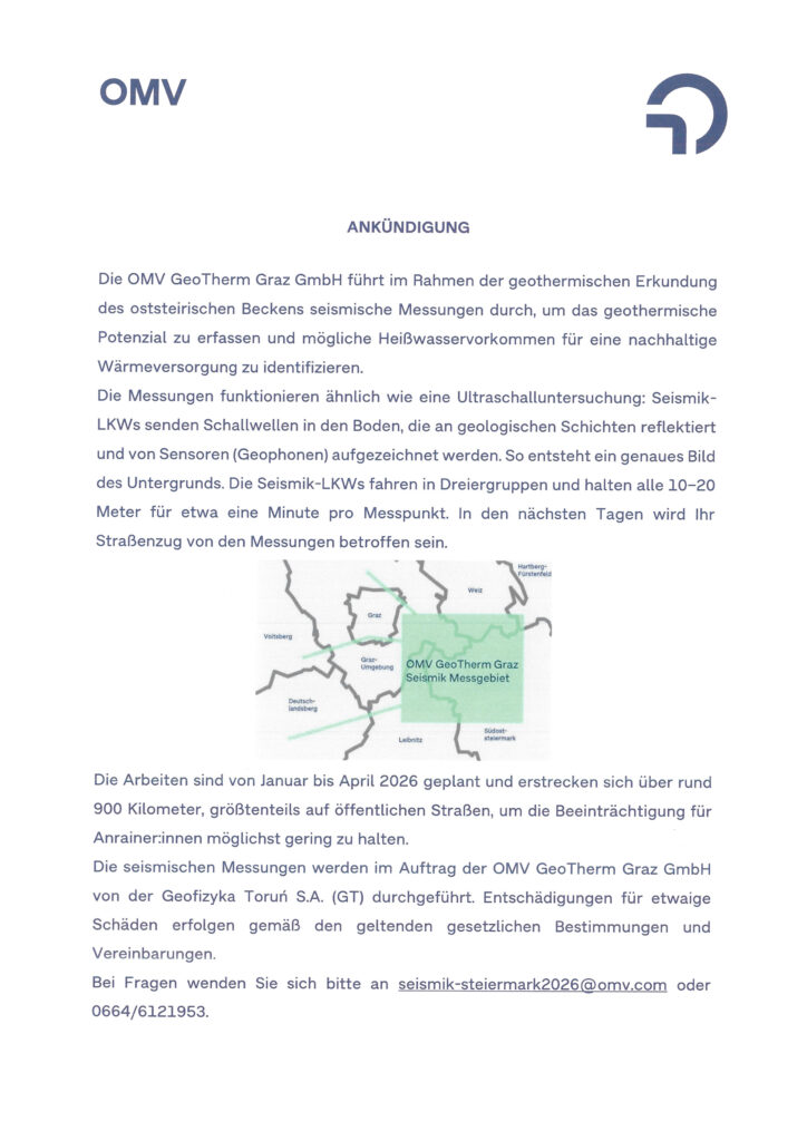 Weitere Informationen zur Seismik erhalten Sie hier: Zukunftsenergie für Graz: Seismische Messungen starten 2026 | OMV.at